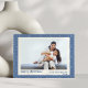 Deseje aos amigos e à família um Feliz Natal com este cartão bonito com um simples padrão de neve azul e branca, personalizado com sua foto, saudação e nome.