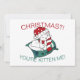 Natal? Você está me cozinhando! Cartão de saudação de ilustração de gatinho de Natal fofo. Não acredito que o Natal está bem próximo? Nem nós! Mande suas Cartões de natal para seus amigos e família este ano com este gato adorável vestindo uma ilustração festiva de chapéu de Papai Noel. Adicione sua foto da família favorita e sua mensagem pessoal à parte traseira do cartão. Você pode alterar a fonte, o tamanho da fonte e a cor.