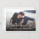 Esse cartão magnético moderno salva a data apresenta um layout de design minimalista com texto clássico e clássico de script de caligrafia. Um quadro branco simples destaca sua foto favorita. Você pode personalizar facilmente o cartão com seus nomes, data do casamento e detalhes.