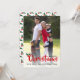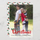Cartão com fotos de férias de Natal Sagrado, Moderno e Merriest. O desejo "Feliz Natal" em uma tipografia escrita escrita escrita escrita à mão em vermelho e preto, groselha holly e uma foto da família adoram esta carta plana contemporânea. Um padrão de morango vermelho e verde enfeita as costas. Fotografia © Storytree Studios, Stanford, CA