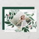 Elegante cartão com fotos de feriado apresenta uma foto favorita cercada por uma borda geométrica de folhagem botânica verde florestal rica e minúsculos bagos vermelhos de cor d'água. "Que o céu e a natureza cantem" aparece no canto superior direito em letras de cinza, com seu nome familiar no canto inferior esquerdo. Personalize as costas com três fotos adicionais e uma mensagem pessoal.