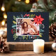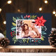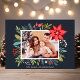 Esta design de cartões de Natal com fotos da família apresenta um belo buquê de poinsettia floral moderno com verde e uma saudação personalizada! Compare um fundo azul marinho escuro com um fundo bolinhas branco. Personalize este design personalizado com seu próprio cartões de natal e nome de família.