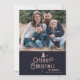Esta bela carta de cartões de natal apresenta uma ilustração da Árvore de Natal rosa dourada com a sua fotografia favorita e uma saudação de 'Feliz Natal' escrita na tipografia do rico. Personalize com sua própria foto e textos.
