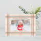 Este cartão de Natal com foto de solteiro espalha a alegria de Natal, com um padrão clássico de xadrez tecida.