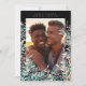 Berries Black and Pastel Watercolor enquadram o Cartão com fotos de Natal. Um belo design cartão com fotos com bagas de aquarela desenhadas à mão e pinheiros criando uma moldura para um cartão de natal elegante com sua foto na frente, e um backer com padrão. Você também pode substituir o backer por outra foto de sua escolha.