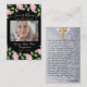 Cartão de oração totalmente personalizado com uma cruz decorativa na parte traseira e versos de oração que você pode personalizar. O cartão de oração vem com uma foto personalizável e personalizada e com um nome e data personalizados do funeral. O design apresenta um script e estilo de escrita manual/caligrafia junto com fontes elegantes e clássicas.