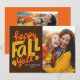 Celebre a temporada com este cartão com fotos de outono feliz! A frente apresenta "Happy Fall Y’all" em cores de queda festivas de laranja, amarelo, dourado e marrom, em conjunto com sua foto, nome e ano da família favorita. A parte traseira do cartão mostra uma segunda foto com espaço para sua saudação personalizada em texto branco sobre fundo laranja. Uma maneira fofa e colorida de compartilhar suas fotos da família do outono e espalhar alegria quente no outono com amigos e entes queridos.