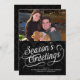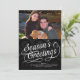 Fundo preto clássico e elegante com texto de script de rico branco. Saudações à sua família e amigos com classe e sofisticação nesta temporada de festas com este cartão de saudação em formato plano de foto de na moda. Todos os Designs Copyright © 2013 www.zazzle.com/ChristmasCardShop* com!