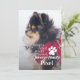Celebre a vida do seu animal de estimação com este cartão de saudação de fotos memorial único. Perfeito em enviar para seus entes queridos quando se lamenta a perda do seu melhor amigo. Espero que isto vos traga paz, felicidade e alegria durante este período difícil. A citação diz: "Sempre amado, muito perdido, para sempre, família." Personalize e substitua facilmente com a foto do seu animal de estimação e altere o nome usando a opção de personalização.
