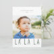 Típica elegante "fa la la la la" em verde-rústico, cartão com fotos de férias. A parte traseira da placa apresenta um padrão de xadrez verde de aquarela com linhas de modelo para sua mensagem e nomes personalizados.