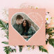 Um quadro fotográfico de arco e um design tipográfico ousado trabalham juntos para criar esta placa de saudação moderna e em forma de coração do Dia de os namorados. O verso da placa apresenta um padrão cardíaco simples, mas festivo.