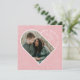 Um quadro fotográfico de arco e um design tipográfico ousado trabalham juntos para criar esta placa de saudação moderna e em forma de coração do Dia de os namorados. O verso da placa apresenta um padrão cardíaco simples, mas festivo.