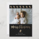 Um design elegante e elegante para uma foto caracteriza um cumprimento do "Feliz Natal" da folha de ouro com um homem de pão-de-espécie da folha de ouro. A parte traseira caracteriza um fundo preto com os homens de pão-de-espécie do teste padrão da folha de ouro. Este design é editável e pode ser personalizado em linha.