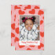 Este Dia de os namorados moderno e doce apresenta um padrão de fundo de pulgões vermelhos do coração, tipografia retrô e uma foto vertical. A parte traseira da placa tem o mesmo plano de fundo, que pode ser removido se desejar. Você também pode adicionar outra foto ao verso e/ou texto adicional ao verso. Este tamanho menor é perfeito para trocas de Dias de os namorados em sala de aula!