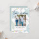 Este cartão com fotos costeiro de férias "mares e saudações" apresenta conchas, uma tartaruga marinha/honu e estrelas-do-mar em tons azuis e verdes pastéis. O verso apresenta um fundo azul-turquesa claro com padrões de neve. Personalize-o para as suas necessidades. Você pode encontrar produtos correspondentes na minha loja.