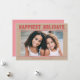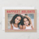 Este doce cartão com fotos de feriado apresenta um fundo de papel kraft com sotaque gêmeo vermelho e branco, tipografia festiva e uma saudação que simplesmente diz "Feriados mais Felizes". Este design acomoda uma foto horizontal. Uma atrás, há um padrão de faixa diagonal vermelha e branca que ecoa o fio do padeiro na frente. Você pode personalizar este design ainda mais adicionando outra foto e/ou texto adicional ao backer.