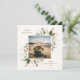 Quadro de Folhagem Botânica Festiva de Férias, cartão com fotos plano. Características, tipografia de cor vermelha rústica e suporte de cor sólida correspondente.