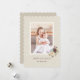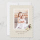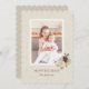 Cartão com fotos russo de férias com buquê floral de inverno e fundo falso de canvas burlap.