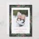 Cartão com fotos de férias personalizado com folhagem de Natal rústica e design de bagas vermelhas.
