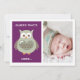 CARTÃO COM FOTOS ROXO BONITO DO ANÚNCIO DO BEBÊ DA CORUJA: Use este cartão com fotos bonito e adorável para enviar a seus amigos e família para dar boas-vindas ao seu recém-nascido. Use o alerta para personalizar o produto. Se você quer mudar o gráfico, contacte-me por favor através de minha loja. AntiqueChandelier©