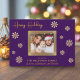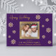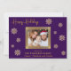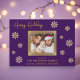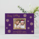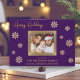 Compartilhe a alegria do Natal com este maravilhoso cartão com fotos familiar. O fundo roxo profundo é belamente acentuado com intrincados flocos de neve de ouro, criando um design festivo e sofisticado. Sua querida foto de família toma o palco central, enquadrada por uma grande borda de ouro, criando um ponto focal que irradie calor e amor. Personalize o cartão com o nome de sua família e os nomes de cada membro para torná-lo exclusivamente seu. A dentro do cartão apresenta uma mensagem de feriado emocionada em elegantes letras douradas, estendendo desejos calorosos para uma temporada de férias cheia de felicidade e alegria. Esta placa plana personalizável é uma maneira ideal de se conectar com os entes queridos durante a época mais maravilhosa do ano.