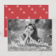 Moderno Russo Cartões com fotos de Natal Feliz. Adicione facilmente sua foto personalizada e seu nome. Há um padrão de árvore de Natal bonito na parte de trás do cartão, em um design vermelho e branco festivo. Esses Cartões de foto de Natal elegantes fazem um presente ideal para amigos e familiares nesta temporada de festas.