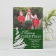 Um cartão com fotos moderno do feriado que caracteriza uma árvore de Natal de prata cobriu com uma estrela em um fundo verde. Personalize facilmente com seus próprios foto e texto! O design é ilustrações/gráficos impressos plano - FOLHA DE PRATA NAO REAL. Para resize e posicionar sua foto, clique sobre "PERSONALIZAM-NO" botão.