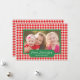 Compartilhe de seus desejos do feriado esta estação do Natal com um cartão liso personalizado original da foto. Características deste design festivas uma beira vermelha e branca do houndstooth junto com um quadro verde para sua imagem junto com uma área para o sentimento que lê a "paz, amor, alegria". Você pode igualmente personalizar com seu nome de família. A parte traseira do cartão é decorada com um teste padrão vermelho e branco encantador do dente de cão. Substitua a foto mostrada com seus próprias para esse de um design amável que seus família e amigos adore! Projetado pelo © Susan Coffey do artista. Estúdios de Storytree do © da fotografia, Stanford, CA.