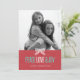 Simples. Doce. Impactful. Este cartão festivo do feriado é toda sobre a comemoração da estação e é projetado exclusivamente para Zazzle. Acento impresso da fita com um envoltório vermelho salpicado da beira suas fotos favoritas com amor. Adicione um selo do feriado dos envolvimento de nossa coleção extensiva do porte postal para combinar perfeitamente com seu cumprimento. Os envelopes dos envolvimento, os forros e os cercos de Pocketfold® estão disponíveis como um serviço adicional (no direito) com zazzle.com