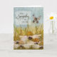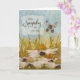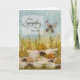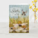 Cartão de condolências com flores de casquinha "confusas", uma borboleta, e uma pintura espalhada, angustiada fundo vertical revestido de folhas e céu.