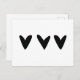 Cartão de saudação branco e preto com pequenos corações de rabo