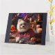 Cartão com uma impressão fofa de um Spitz Pomerânia branco num disfarce de Halloween sentado numa sala atmosférica acolhedora vai preencher o seu visual com um clima festivo! O cão com a inscrição “Trick or Treat” adiciona um toque de diversão e charme, perfeitamente enfatizando a atmosfera de Halloween. É perfeito para os amantes de animais de estimação e para aqueles que desejam adicionar um clima festivo ao seu cartão elegante.