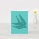 Placa em um impressão de mídia mista de uma andorinha em voo, padronizada com padrão de nuvem japonesa vintage contra um fundo com padrão de espiral em turquesa e aqua suave, com saudação personalizável de dentro