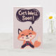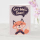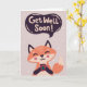 Raposa bonita com café e saudação de "Fique Bem Logo". Escreva o seu dentro de mensagens personalizado.