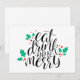Espalhe alegria nesta época com o design Comer, Beber e Alegrar-se com acentos festivos de azevinho e uma mensagem alegre. Perfeito para criar decorações de Natal ou presentes que inspiram bons momentos e celebração.