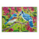 Um bluebird e um jay azul compartilham de um ramo em uma árvore do myrtle de crepe.