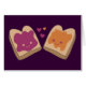 A manteiga de amendoim e a gelatina são uma das únicas comidas que são completamente compatíveis juntas e apaixonadas. Esta apresenta duas fatias de pão com manteiga de amendoim e geleia espalhadas e elas parecem adoravelmente umas às outras. Excelente de presentes de Dia de os namorados ou aniversário também.
