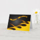 Competindo acentos da chama sobre um contexto preto. Efeito metálico no contexto. Feliz aniversario nas chamas. Grande cartão para o entusiasta dos desportos automóveis.