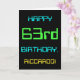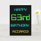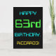 Este simples e divertido design de cartões de aniversário apresenta uma mensagem como "FELIZ 63º ANIVERSÁRIO, RICCARDO!". Seu olhar é inspirado pelo campo da computação digital. O nome na frente e a mensagem no dentro podem ser personalizados. Ele poderia ser enviado ou dado a alguém que comemora seu sexagésimo terceiro aniversário, e que talvez trabalhe (ou trabalhou antes da aposentadoria) como administrador de sistema de computador, programador de computador, administrador de rede, engenheiro elétrico, desenvolvedor de software ou que, de outra forma, gosta de usar computadores. [~Z0000100]
