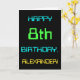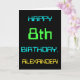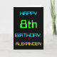 Este simples e divertido design de cartões de aniversário apresenta uma mensagem como "FELIZ 8º ANIVERSÁRIO, ALEXANDER!". Sua aparência é inspirada no campo da computação digital. O nome na frente e a mensagem no dentro podem ser personalizados. Pode ser enviado ou dado a alguém que comemora seu oitavo aniversário, e que talvez trabalhe como administrador de sistema de computador, programador de computador, administrador de rede, engenheiro elétrico, desenvolvedor de software, ou que de outra forma gosta de usar computadores. [~Z0000100]