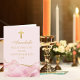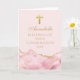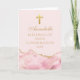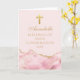 O rosa elegante e o áгата dourado decoram este lindo cartão de congratulações de confirmação personalizado para a celebração da cerimônia cristã de uma menina. Personalize com um nome e suas bênçãos sob a bela cruz.