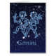 Cartão Constelação Gemini e Sinal Zodíaco com Estrelas