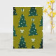 Enjoy our wonderful green and white Christmas trees on a gold background. This card is ready for you to personalize. 5x7" dimensions