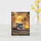 Este cartão de aniversário contém um caminhão trator com fundo atmosférico.