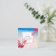 Compartilhe do amor consultam as flores cor-de-rosa feitas sob encomenda de um plumeria das características de design do cartão da referência do amigo ajustadas nos cantos contra um fundo branco bonito, calmo do Sandy Beach. Cartões quadrados lindos, originais da referência que vêm nos blocos de 100.