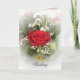 A rosa vermelha bonita no efeito do borrão e dois anéis decoram este cartão do convite do casamento para personalizar a adição de seu próprio texto