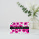 Cartão telefónico das mamães/cartão coloridos dos trabalhos em rede, feito em cor-de-rosa, em branco, e em preto, com as flores grandes e as bolinhas vermelhas e pretas. Uma listra preta funciona através do meio como um campo do texto. As grandes mamães jogam a data, cartão dos trabalhos em rede pronto para personalizar com sua própria informação.