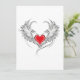 Coração vermelho pintado artificialmente com cinza de asas de anjo, decorado com contorno liso preto.