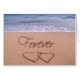 Dois entrelaçaram corações em um Sandy Beach com forever na pia batismal do roteiro. Design do divertimento para o casal do casamento do destino.