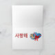 "사랑해" - "Eu amo você" em coreano. Dê este cartão adorável no Dia dos Namorados ou sempre que desejar expressar seu amor. Corações feitos de caules de flores flutuam acima de um fundo de fitas vermelhas e douradas.